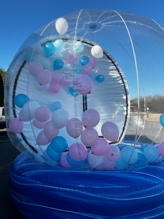 1Introducing Jump Around Events' Inflatable Bubble House Rental, a captivating addition to your gender reveal party or photo op event. This transparent, inflatable dome offers a magical setting for a variety of special occasions, blending the excitement of a big reveal with the beauty of an immersive environment. With every rental, we provide a dedicated attendant to assist with smooth entry and exit, ensuring a seamless and enjoyable experience for all your guests.
