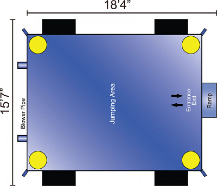 - OCCUPANCY: A maximum of 5-6 kids of equal size at one time for bounce houses, and 1 person at a time for slides is what most inflatable manufacturers recommend.