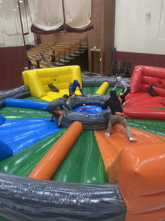 - Up to 4 players start at their designated walls, each attached to a bungee cord.
