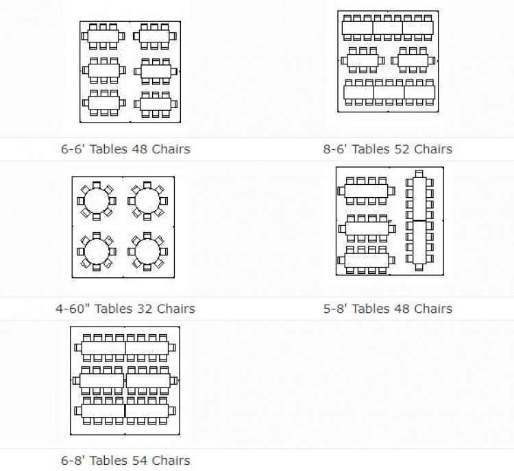 - Note: You will need to seat fewer guests if you require space for food tables under the tent.
