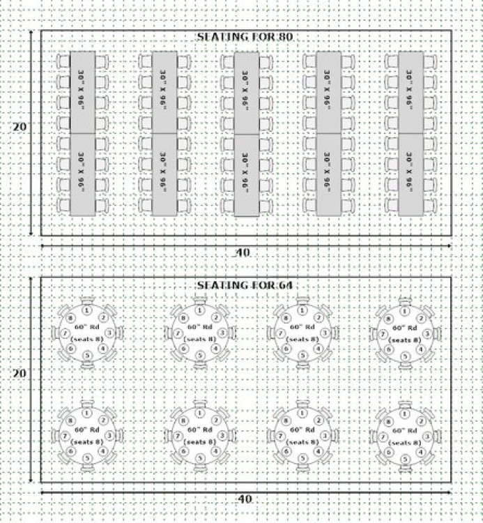 Capacious Layout: The 20x40 tent comfortably accommodates various seating arrangements: up to 64 guests at 8 round tables, or 80 guests at 8 eight-foot rectangular tables. This flexibility makes it ideal for both formal dining and casual seating setups. Tables and chairs are not included but can be added.