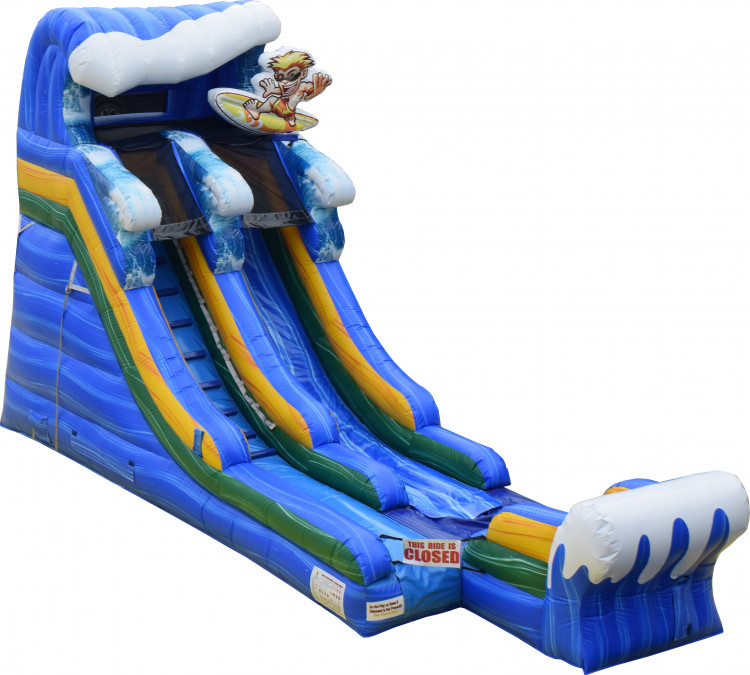 1Tidal Wave Water Slide Blue. This water slide can move people through quickly and add a ton of fun to your outing! Ride the wave all the way down to the splash zone!