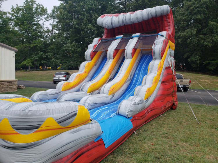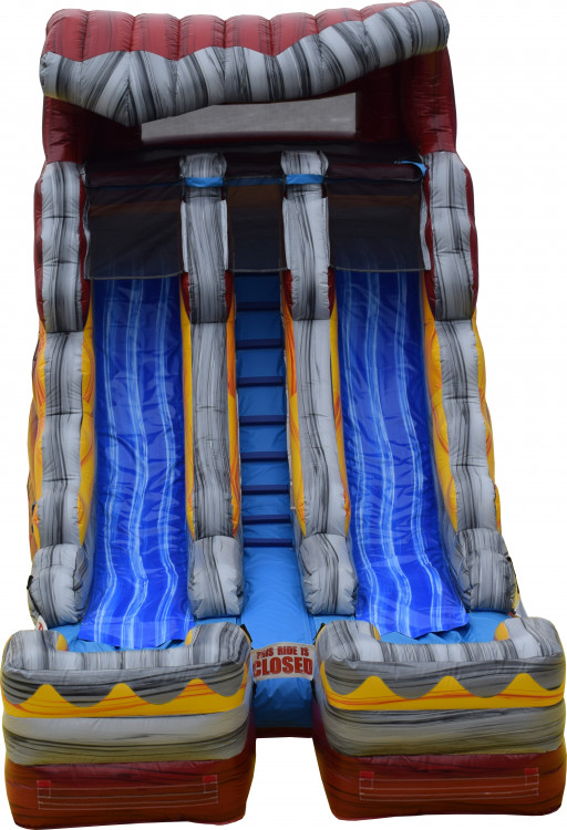 Volcano Double Lane Inflatable Water Slide. This waterslide is a fan favorite. The volcano slide is perfect for larger crowds or if you just want to double your fun. Adults up to 180 lbs can use this slide!